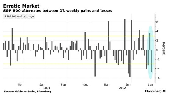 标准普尔 500 指数在五天内下跌 4.8% 至 3873 点,抹去了前一周的所有涨幅。现在,它已经连续三周向与上周相反方向移动至少 3%——这是自 2018 年 12 月以来从未出现过的波动。