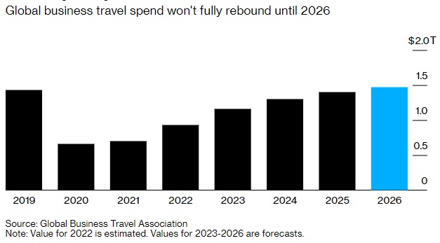 全球商务旅行支出要到2026年才能回升至疫情前水平