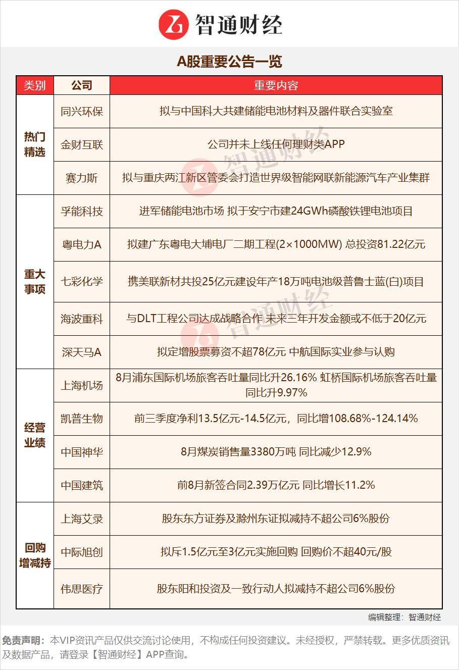 【A股重要公告一览】