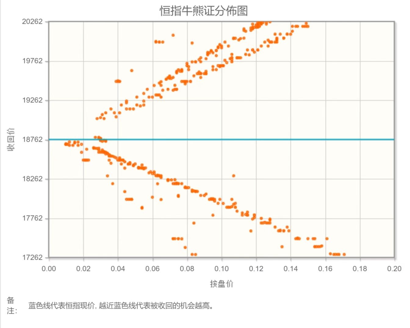 从恒生指数牛熊街货分布情况看,18762点位置,牛证密集区靠近中轴,市场预计将持续走弱。市场意识到联储控制通胀的道路可能漫长而曲折。