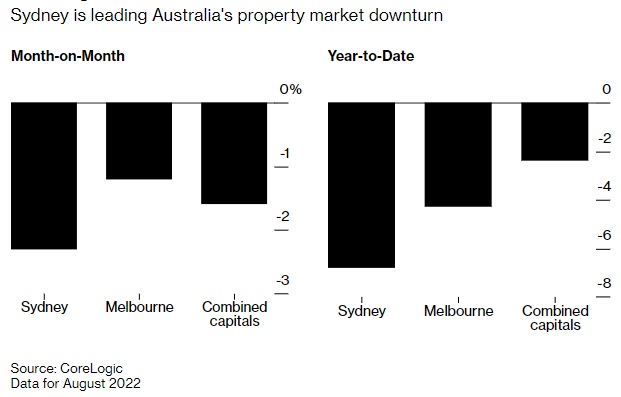 自澳洲联储开始实施几十年来最严厉的紧缩政策以来,澳大利亚的房价下跌已经加速。作为澳大利亚房地产市场风向标的悉尼领跌,而在澳大利亚全国范围内,房价正以1983年以来最快的速度下跌。