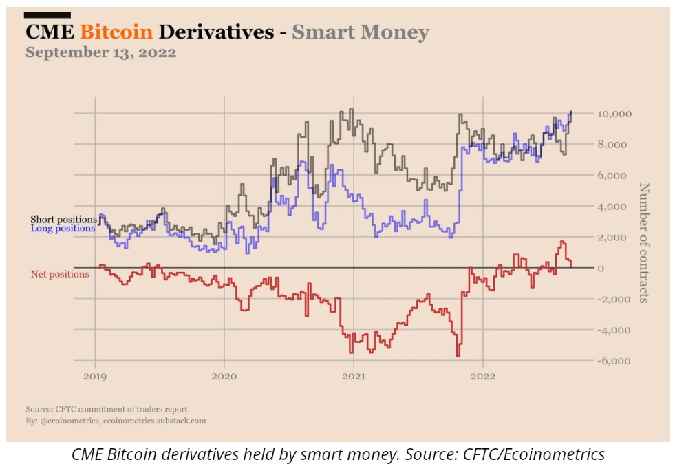 有趣的是,根据美国商品期货交易委员会(CFTC)每周报告中强调的芝加哥商品交易所的数据,这些警告与机构投资者持有的比特币空头头寸近期上升相吻合。