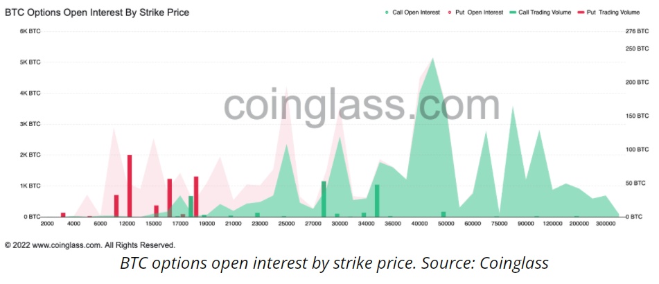 将于2022年底到期的比特币期权合约显示,多数交易员押注比特币价格将一路跌至1万-1.2万美元区间。