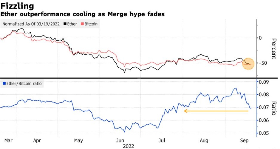 以太坊区块链升级的炒作刺激了以太坊自6月中旬以来的大涨,现在升级完成,以太坊区块链的涨势迅速消退。与此同时,投资者正准备应对美联储本周为对抗价格压力而大幅加息带来的波动。