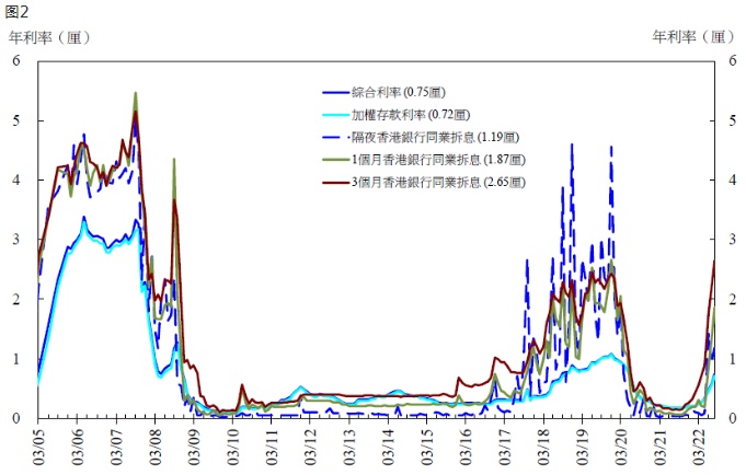 智通财经APP获悉,9月19日,香港金管局公布2022年8月底的综合利率。反映银行平均资金成本的综合利率在2022年8月底为0.75厘,较2022年7月底的0.58厘上升17个基点(见图1)。综合利率上升,反映月内存款及银行同业资金的加权资金成本增加(见图2)。