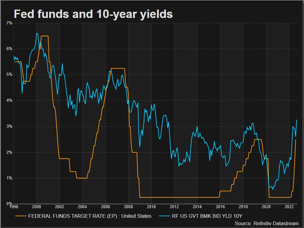数据显示,基准10年期美债收益率周一延续近来涨势并触及2011年以来最高水平。自今年3月以来,美联储已将基准利率上调了225个基点,且预计将在本周的议息会议上再度加息75个基点,以遏制居高不下的通胀。