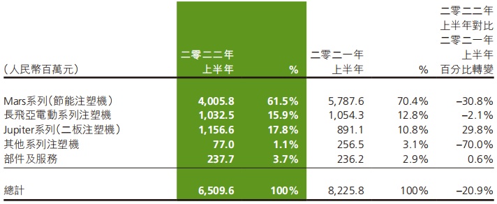 报告期内,海天国际三大系列产品收入表现分化并不令人意外。据悉,国内房地产市场需求放缓对家电、日用品、建材和包装等行业产生较大影响,公司的Mars系列销售情况不理想,因而业绩大幅走低;而长飞亚电动系列则受到汽车和其他行业的综合影响,降幅相对较小。