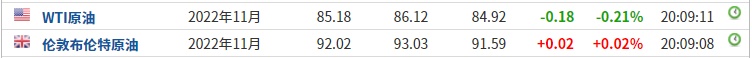 3. 截至发稿,WTI原油跌0.21%,报85.18美元/桶。布伦特原油涨0.02%,报92.02美元/桶。