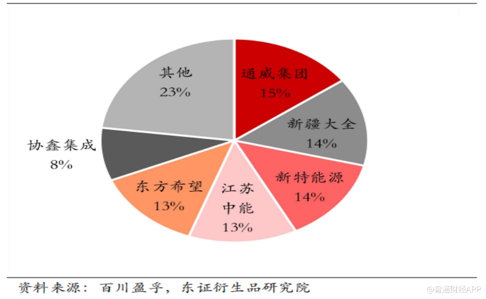 据智通财经APP了解,多晶硅生产属于高资金、高技术壁垒的行业,项目建设、投产周期通常长达两年及以上,新厂商进入该行业较为困难。因此,行业内头部厂商凭借自身技术、规模优势,将继续扩张自身产能,提升市场份额。据东证期货研报,2021年,以新特能源为代表的6大头部厂家,在多晶硅市场的份额已经高达77%。