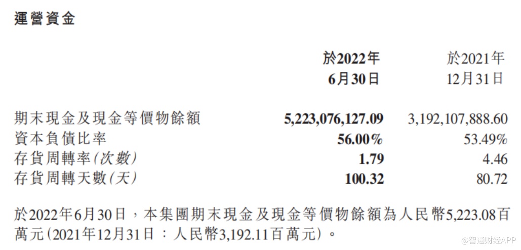 产能大幅扩张意味着公司需要大量的资本开支。上半年,公司投资活动所用现金流量净额达到70.76亿元,同比增长559.2%,远超经营活动活动现金净流入。为此,公司上半年的筹资活动现金流量净额达到33.8亿元,同比增长100.6%,推动公司资本负债比率达到56%,同比提升2.51个百分点。