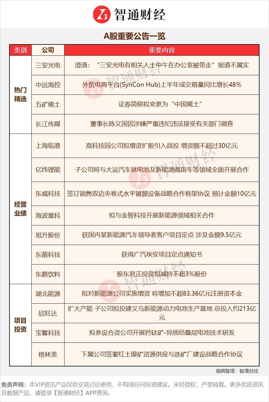 【A股重要公告一览】