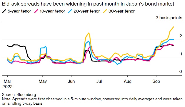 媒体汇编的数据显示,日本政府债券不同期限的买卖价差至少达到了自3月份以来的最高水平。交易员正在等待日本央行周四公布利率决议,与此同时,流动性也出现枯竭。