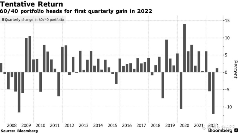 一项指数显示,随着股市从6月低点收复部分失地,60/40组合有望实现今年首个季度正收益。欧洲最大基金管理公司Amundi的首席投资官Vincent Mortier表示,在更广泛的意义上,随着美联储在抗击通胀方面取得进展,人们希望债券将有更大的能力对冲股市崩盘。