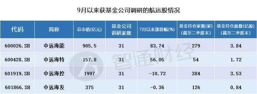 公募基金积极调研航运股或与板块及个股自7月以来的良好市场表现有关。