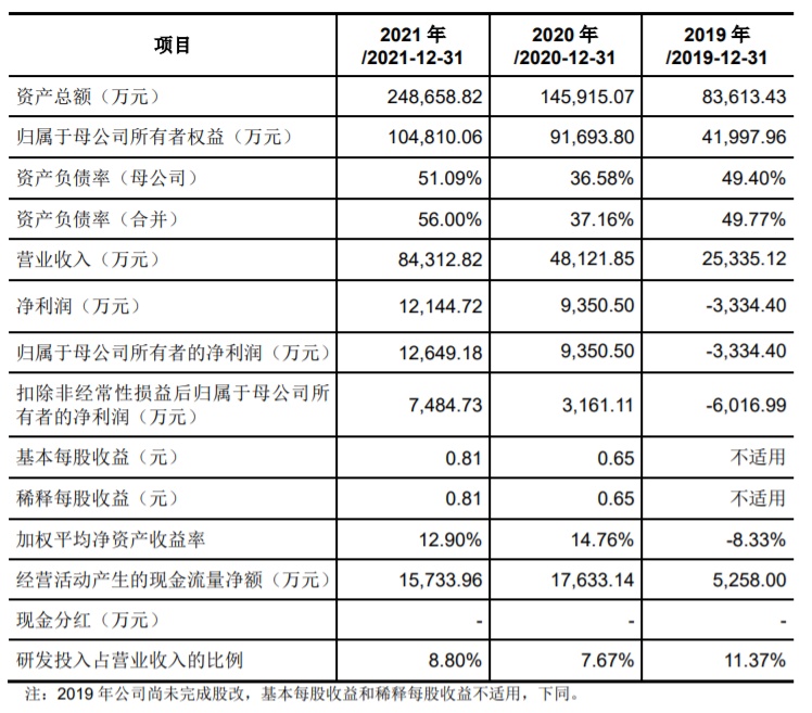 财务方面,富创精密于2019年度、2020年度及2021年度,实现营业收入分别为2.53亿元、4.81亿元及8.43亿元,同期,公司归属于母公司股东的净利润分别为-3334.40万元、9350.50万元、1.26亿元。