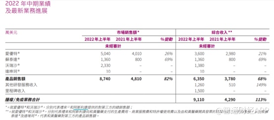 2022年上半年,受益于爱优特®、苏泰达®及沃瑞沙®的商业化推进,公司收入2.02亿美元,较去年同期增长28%。其中,爱优特®市场销售额为5040万美元,同比增长26%;苏泰达®市场销售额为1360万美元,去年同期为800万美元,苏泰达®销售的大幅增长主要得益于今年1月份首次纳入国家医保药品目录;沃瑞沙®为中国首个选择性MET抑制剂,受益于阿斯利康庞大的肿瘤团队的推广,上半年该药市场销售额为2330万美元。达唯珂®于今年6月在中国海南省成功上市,下半年有望为公司贡献部分业绩。