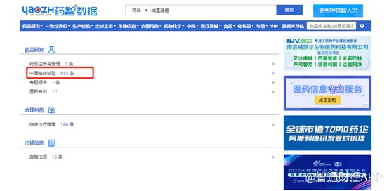 虽然结直肠癌是常见癌种,但是市场竞争也十分激烈,药智数据显示,针对结直肠癌这一适应症,中国临床试验有655条,可想而知其市场竞争程度。