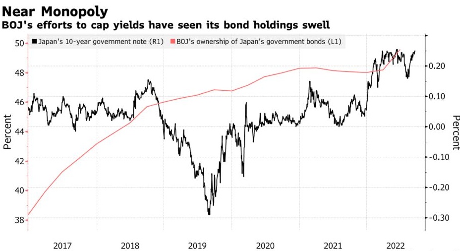 美债利率走低助力日本央行YCC