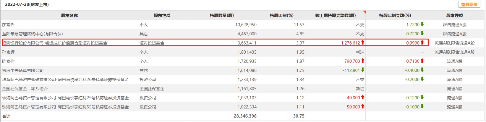 不过,丘栋荣加仓的同时,二季度才刚新晋川仪股份前十大流通股东的富国周期优势混合基金,却在三季度减持87.69万股,从二季度的第七大流通股东退为最新的第十大流通股东。