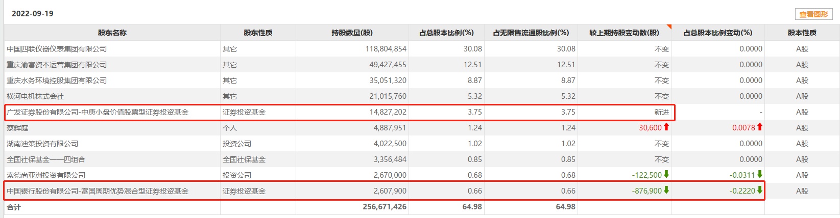 9月22日,“自动化仪器仪表龙头”川仪股份(603100.SH)公告显示,截止9月19日,丘栋荣管理的中庚小盘价值持有1482.72万股,占公司总股本比例3.75%,期末持仓市值超3.19亿元,首次现身公司第五大股东。