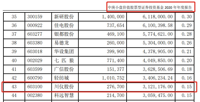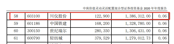 值得一提的是,2020年年报显示,同样由丘栋荣管理的中庚价值灵动基金自2020年4季度以来也一直持有川仪股份12.29万股。