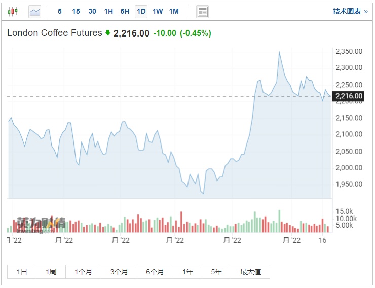 智通财经APP获悉,由于咖啡豆短缺,越南的咖啡交易本周依然低迷,交易员们在等待下个月开始的新作物季节,而印度尼西亚的咖啡供应在收获结束时开始减少。截至发稿,11月伦敦Robusta咖啡期货价格跌0.45%,报2216美元/吨。