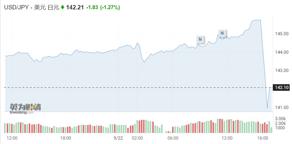 日本负责外汇事务的官员Masato Kanda周四表示,由于汇市走势突然且单边,日本已经对汇市进行了干预。受此消息影响,日元兑美元汇率大幅走高。此前,美元兑日元汇率自1998年以来首次涨破145,原因是美联储在当地时间周三决定将关键利率上调75个基点,同时日本央行维持了超低利率。