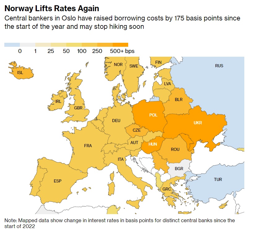 自今年年初以来,挪威央行已经基准利率提高了175个基点,暗示可能很快就会停止加息
