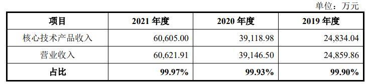 2019年度至2021年度,该公司核心技术产品收入占营业收入比重情况如下: