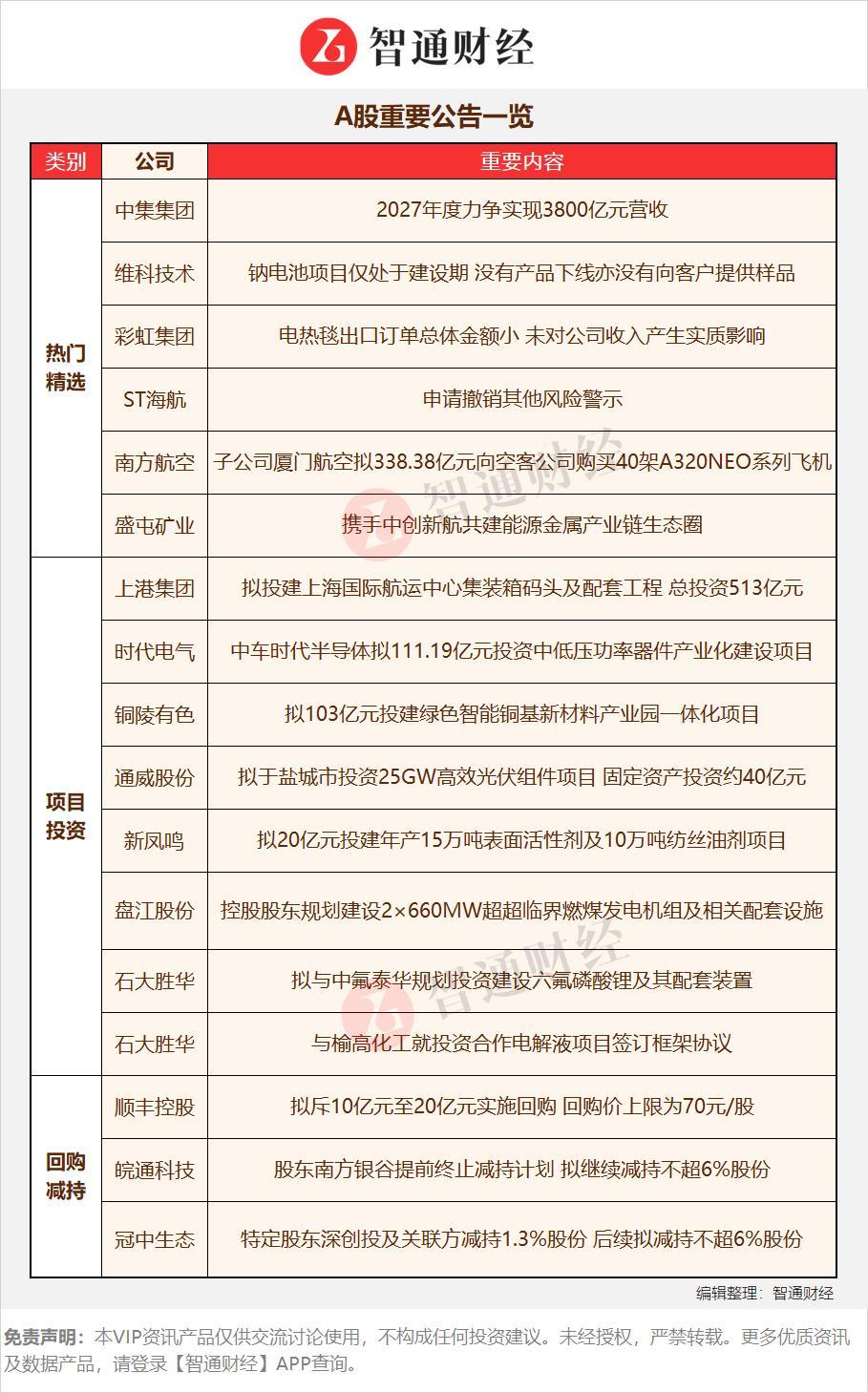 【A股重要公告一览】