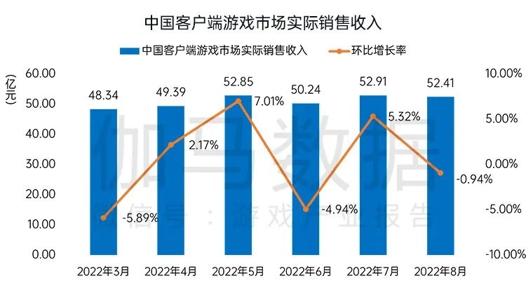 2022年8月客户端游戏市场规模:环比增长率由正转负
