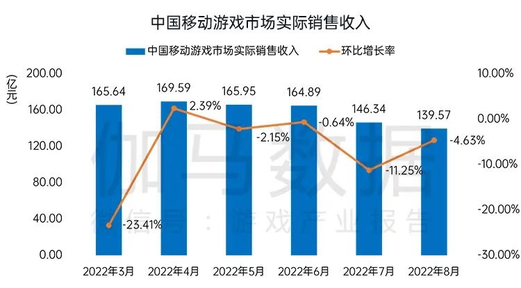 2022年8月移动游戏市场规模:环比反弹 降幅收窄