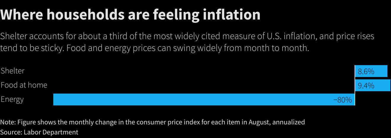 不断上涨的租金也在挤压消费者的收入,且这一情况至少在未来几个月不会有什么缓解。根据汇丰银行美国经济学家Ryan Wang的说法,8月份两大主要租金指数的加权平均涨幅升至6.4%,而3个月的年化涨幅跃升至8.6%,“表明租金仍在加速上涨的过程中”。