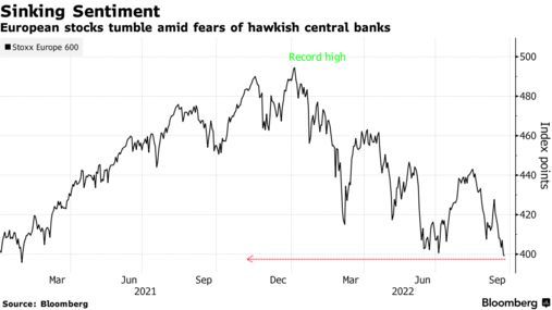 对经济状况恶化、能源危机和更加鹰派的央行的担忧正在打击投资者的风险偏好,欧洲斯托克600指数自1月创新高以来已下跌19%,已连跌三个季度,有望成为2009年以来持续最久的一轮下跌。