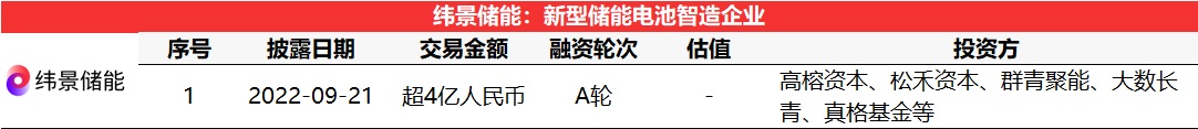 2、纬景储能:公司在6个月内连续完成数轮融资,共计融资金额超4亿元。投资方包括高榕资本、松禾资本、群青聚能、大数长青、真格基金等。本轮融资所募集资金用于锌铁液流电池的持续技术创新,以及多个吉瓦级产能“超G工厂”的建设和投产等。
