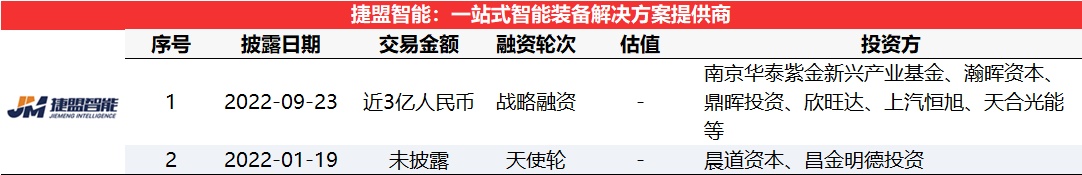 3、捷盟智能:完成了近3亿元人民币的战略轮融资,本轮融资由华泰紫金旗下南京华泰紫金新兴产业基金领投,瀚晖资本、鼎晖投资、欣旺达、上汽恒旭、天合光能等11家投资机构及产业资本参与投资。本轮融资将加速公司未来核心产品的试验进程,推动多个在研项目的研发进程,扩充公司的研发队伍。