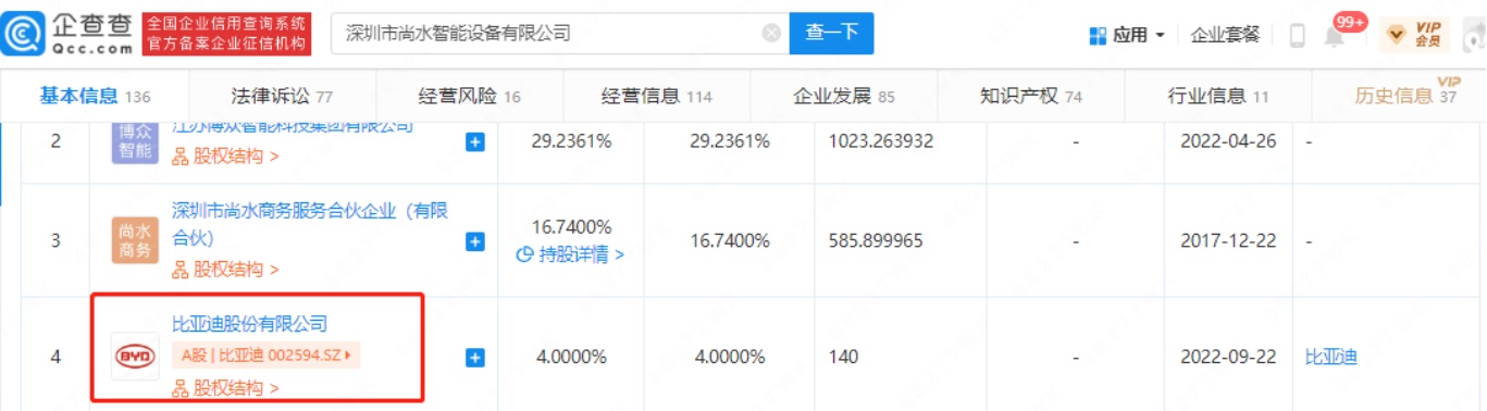 智通财经APP获悉,企查查APP显示,近日,深圳市尚水智能设备有限公司(下称:尚水智能)发生工商变更,新增比亚迪(002594)等为股东。