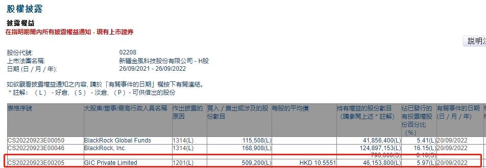 智通财经APP获悉,香港联交所最新资料显示,9月26日,GIC Private Limited减持金风科技(02208)50.92万股,每股作价10.5551港元,总金额约为537.47万港元。减持后最新持股数目为4615.38万股,最新持股比例为5.97%。