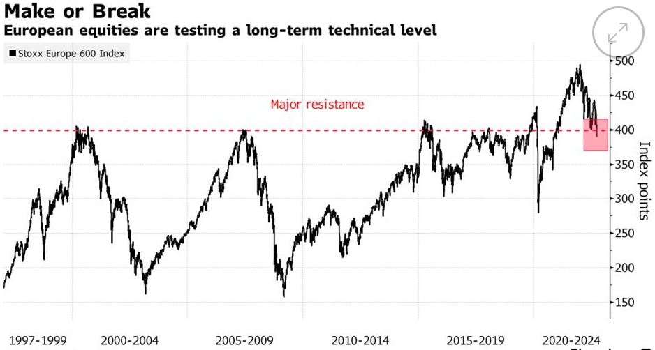 斯托克600指数已跌破400点的关键关口,这是过去20年的主要阻力来源,这可能会让人对该指数滑入超卖区域后的任何反弹势头产生怀疑,超卖通常是股市即将反弹的标志。