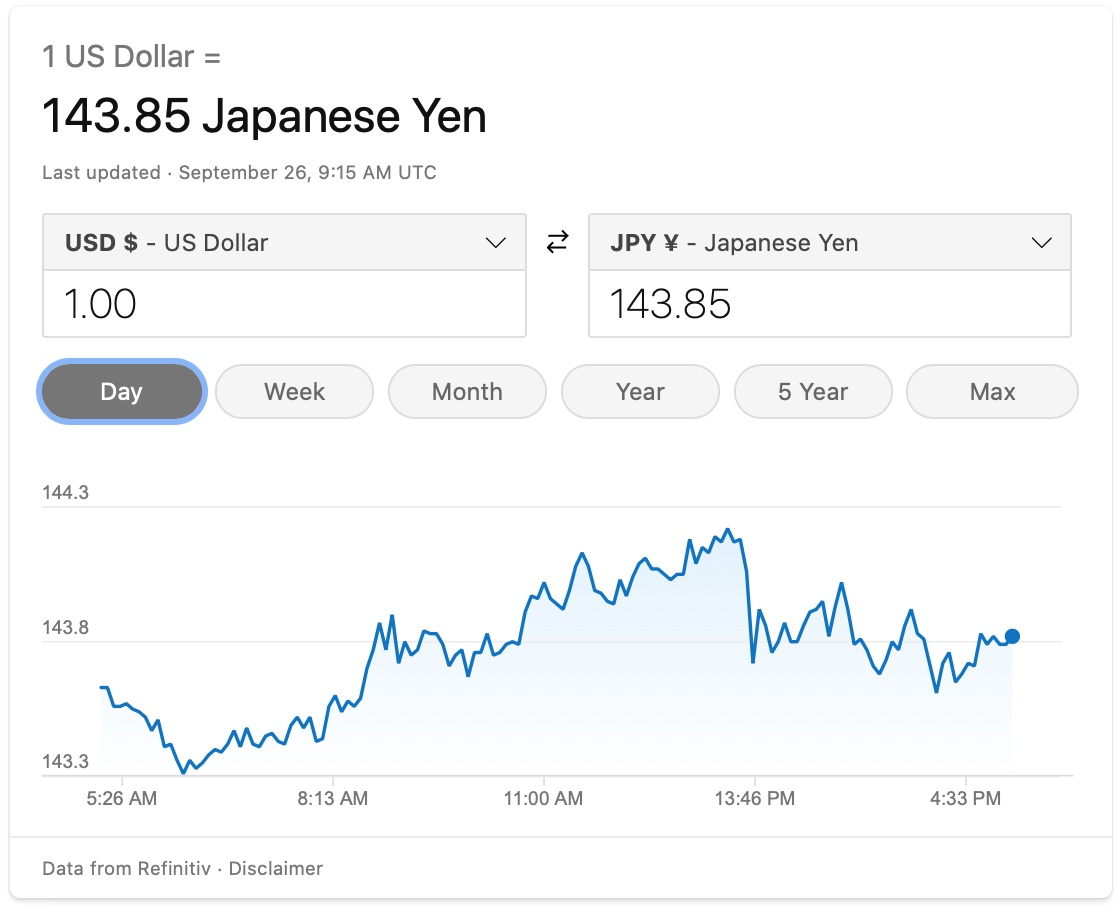 截至发稿,日元兑美元汇率为1美元兑143.85日元。
