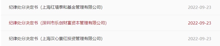 智通财经APP获悉,9月23日,中基协一连发布5则纪律处分决定书,涉及红墙泰和、汉心景红、乐创财富3家私募机构,以及红墙泰和实际控制人郑玉峰和乐创财富实际控制人钟浩翰。