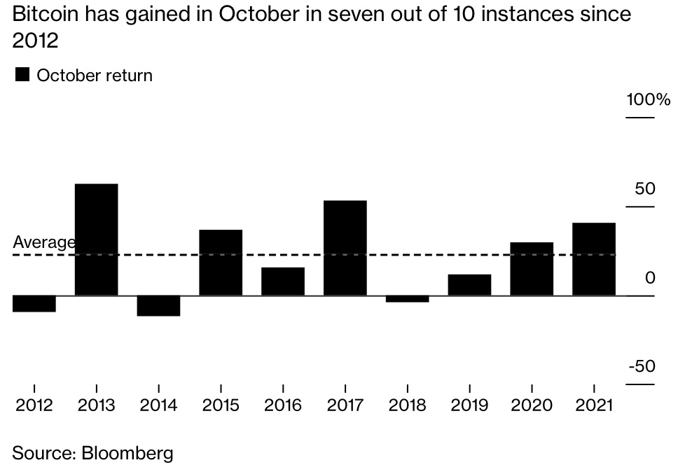 季节性因素:自2012年以来的10个10月份中,比特币有7次是上涨的
