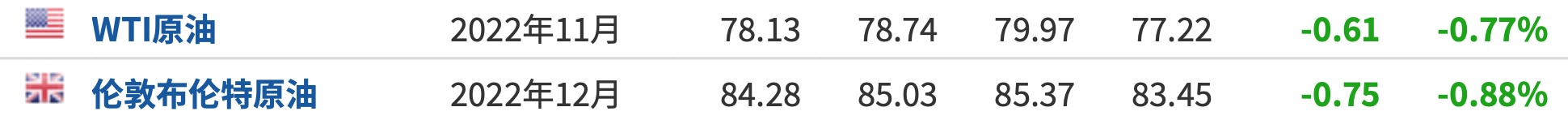 美元再创二十年新高,需求拖累油价跌至八个月低点。随着美元飙升至新高,油价再次下跌,而对经济衰退的担忧日益加剧,威胁到了全球需求,同样加剧了油价的暴跌。周一,WTI原油一度跌至每桶78美元以下,创下今年1月以来的盘中最低水平。截至发稿,美元指数(DXY)涨0.51%,至113.77;WTI原油期货价格跌0.77%,布伦特原油期货价格跌0.88%。油价暴跌可能会促使欧佩克及其盟友考虑进行干预,以遏制油价下滑,要么口头干预,要么宣布减产。本月早些时候,欧佩克+宣布象征性的减产,并表示成员国将监督市场。