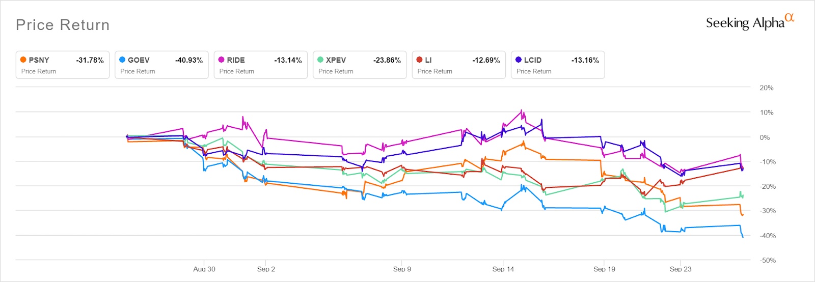 智通财经APP获悉,瑞典电动汽车制造公司极星汽车(PSNY.US)的股价周一跌至新低,收跌5.17%至5.69美元。在过去一个月,该股下跌了30%以上,其跌幅超过大部分电动汽车初创公司,仅好于Canoo(GOEV.US)。