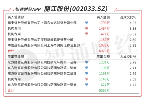 丽江股份(002033.SZ):多主力现身龙虎榜,机构席位对倒净买入1818万元,买一是知名游资的席位买入1793万元,买五是知名游资的席位买入1028万元,当日净买入3112万元,该股如突破平台,则有望挑战近期高点。