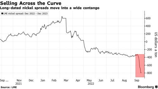 与今年早些时候相比,镍的价差变化出现了很大的转变。当时短期镍合约获得了大幅溢价,表明供应紧张。在3月逼空行情期间,备受关注的现货相对3个月远期合约的价差飙升至800多美元,几乎导致全球最大的镍和不锈钢生产商青山控股集团倒闭。