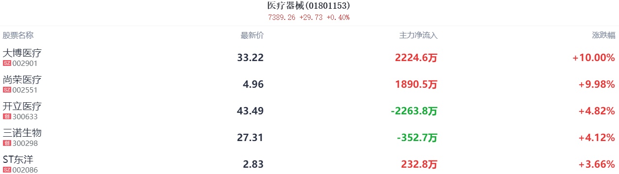 4、医疗器械板块继续活跃