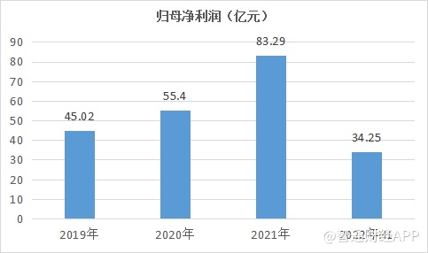 2019-2021年间,公司营收分别为1240.43亿元、1483.48亿元和1751.03亿元,2021年营收同比增速为18.04%,相比2020年有所放缓;报告期内,公司归母净利润分别为45.02亿元、55.4亿元和83.29亿元,2021年利润迎来修复。