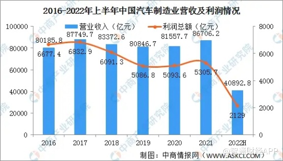 2022年上半年,由于面临疫情下停工停产、缺芯少电等多重负面因素影响,汽车制造业整体承压。据国家统计局数据,上半年行业产销量出现下滑,汽车产销分别完成1211.7万辆和1205.7万辆,同比分别下降3.7%和6.6%。