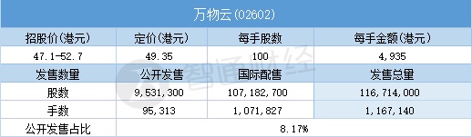 智通财经APP获悉,9月28日,万物云(02602)配售结束。配售招股价47.1-52.7港元,最终定价49.35港元,每手4935港元。